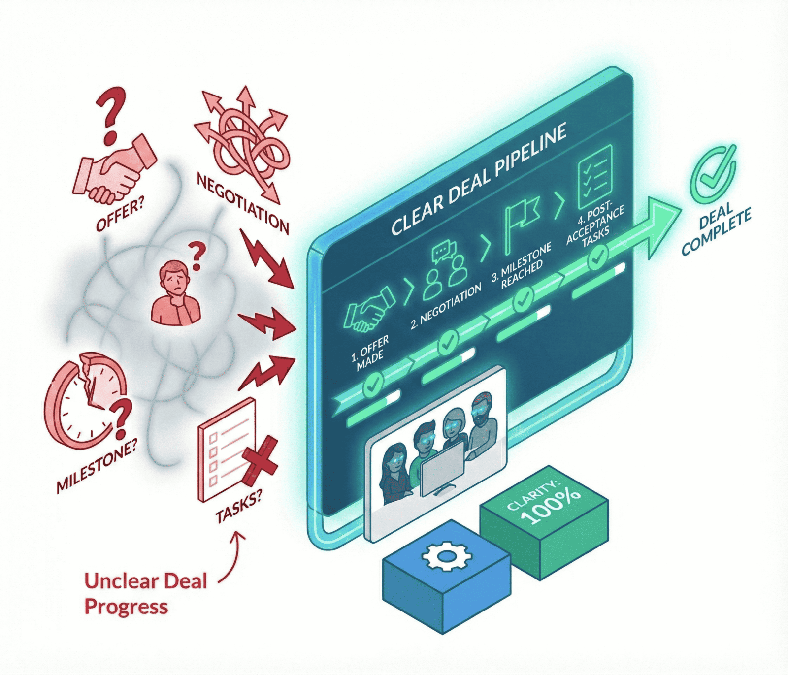A purpose-built platform that centralises your workflows from lead capture and client management to acquisition tracking and handover.